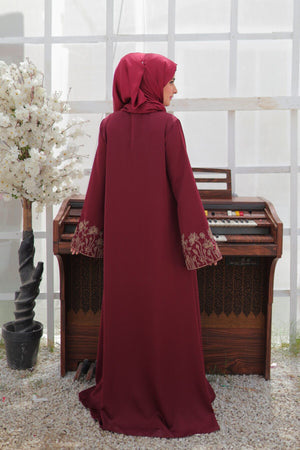 Deep Carmine Embroidered Abaya